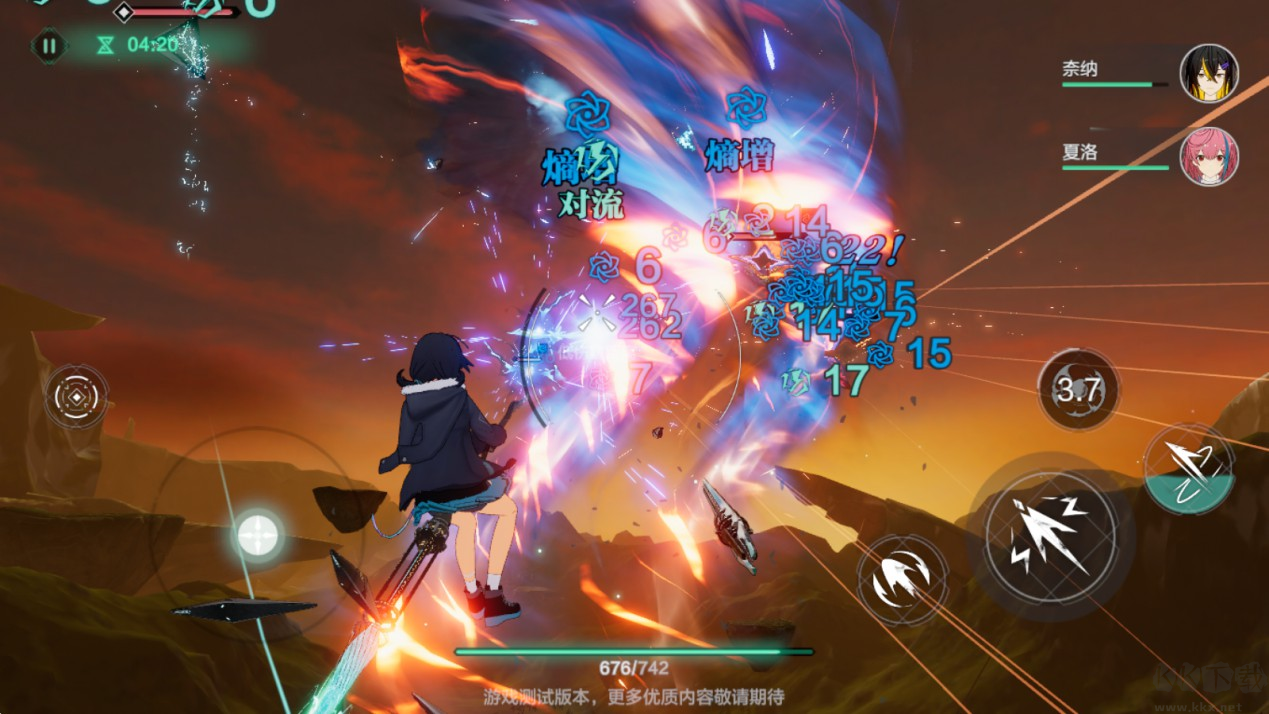 在游戲中,每一位斯露德都有著不同的屬性和武器,也就是式杖。游戲打破常規(guī)在三維空域飛行射擊玩法中加入了角色小隊機制,玩家一次最多可以上場四位斯露德,駐場和后臺角色自由切換,因為每一位斯露德都存在武器過載的機制,所以需要玩家來回切換角色,此時武器過載的斯露德會在后臺自動恢復能量,而不停切換角色釋放技能打出元素反應效果也是游戲重要的戰(zhàn)斗機制之一。