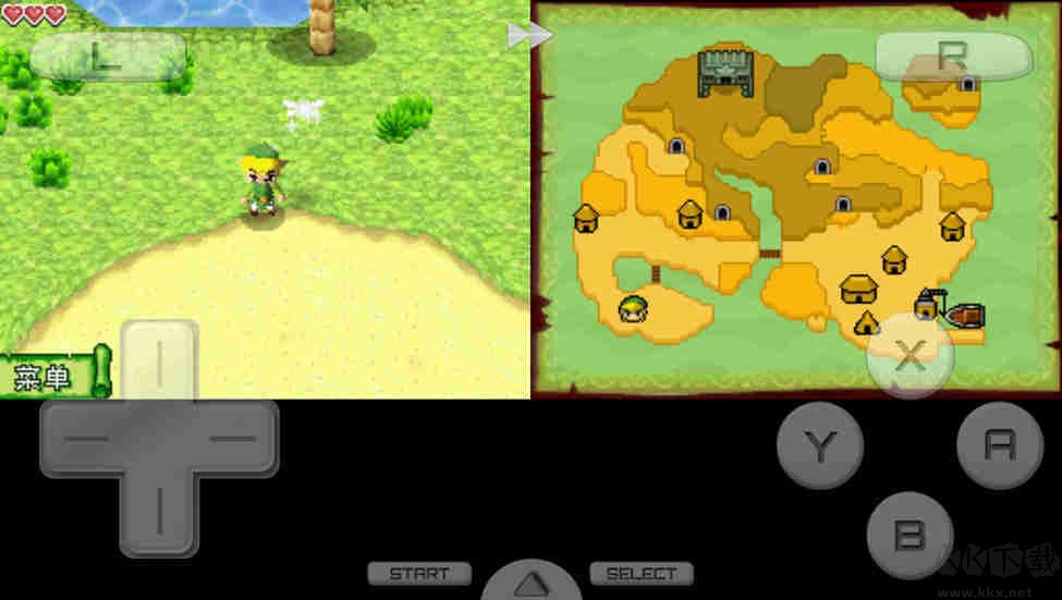 全程觸摸屏的新穎體驗(yàn),在屏幕上點(diǎn)擊來移動林克,在屏幕邊緣畫圈來讓林克滾動,在屏幕上滑動和點(diǎn)擊敵人,林克將會揮劍攻擊