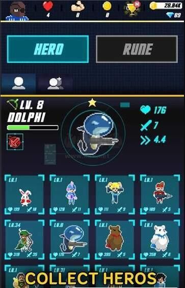 2、以經(jīng)典復(fù)古的像素風(fēng)格為玩家打造出一個(gè)全新的幻想世界,而你將扮演統(tǒng)帥游騎兵出擊的指揮官,通過符文強(qiáng)化提升攻擊力;