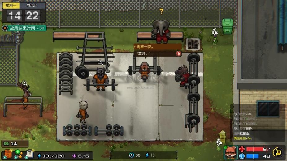 在精美的像素畫面下,你將扮演動物囚犯在嚴酷的監(jiān)獄中生存、探索、成長以及逃脫