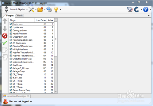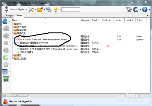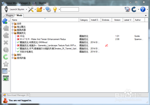 當(dāng)打上自己所有想要打上的mod時(shí),就可以通過左上角的“launch skyrim”按鈕進(jìn)入游戲中。如果遇到游戲跳出,那就只能通過排序esp文件,或者卸載某些mod解決。本人就是w.a.t.e.r的mod會(huì)導(dǎo)致跳出,而無奈舍棄了它。