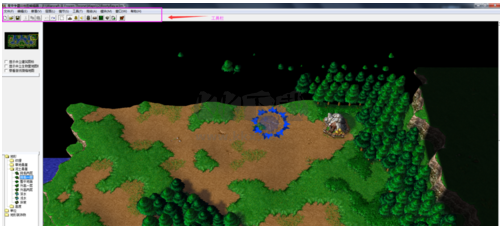 2、單擊菜單欄下面的工具欄,工具欄包含了新建,打開地圖,保存等選項,點擊新建,使用選擇刷子,單擊選擇放置的單位、物品