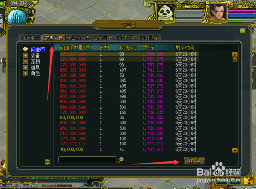 然后點(diǎn)擊寄售列表,自動(dòng)是選擇游戲幣的,然后點(diǎn)擊購(gòu)買