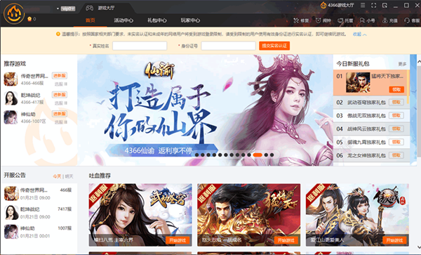4366游戲大廳是一款非常不錯的游戲輔助軟件,用戶無需要在網上查找新的游戲,就可以在這里找到很多好玩的游戲,每天還提供豐富的游戲禮包和游戲積分,讓你獲取禮包更加輕松。
