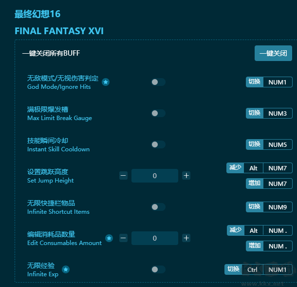 最終幻想16二十六項(xiàng)修改器鍵位功能