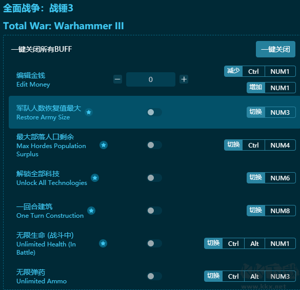 全面戰(zhàn)爭:戰(zhàn)錘3三十五項修改器?鍵位功能