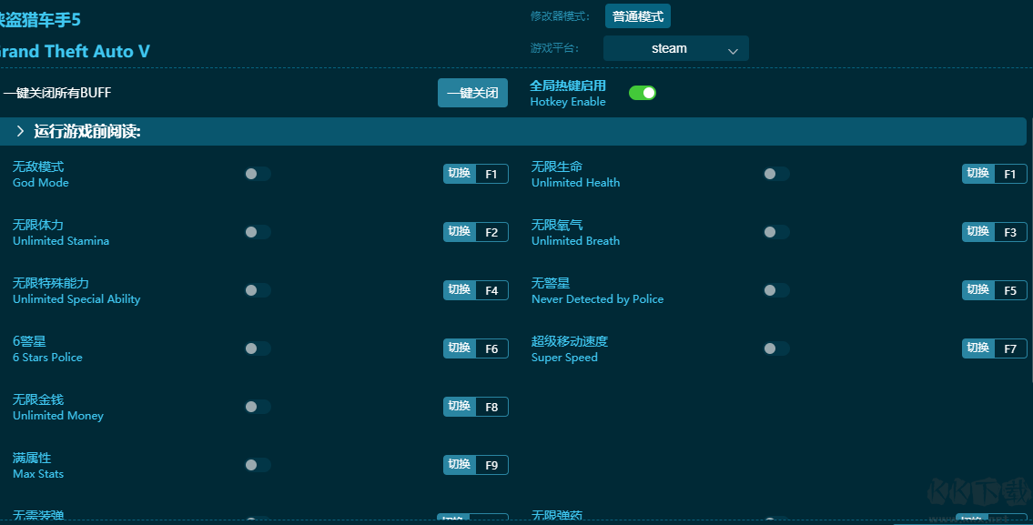 俠盜獵車手5二十五項(xiàng)修改器鍵位功能