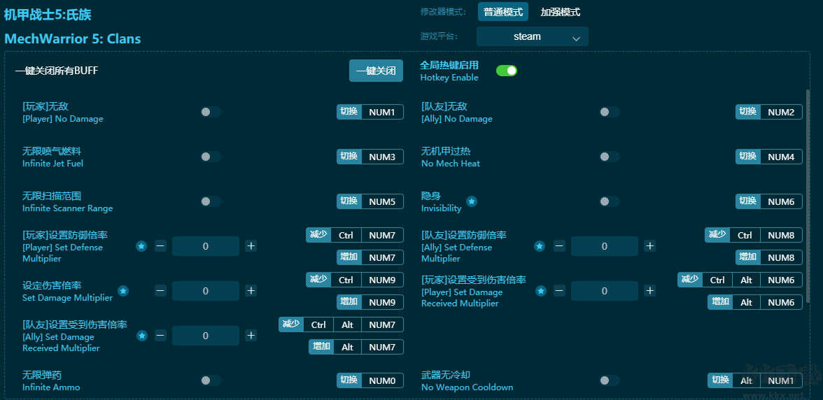 機甲戰(zhàn)士5:氏族十項修改器是一款非常棒的游戲輔助工具,十項強大的功能可以在游戲中使用快捷鍵位開啟,瞬間讓玩家獲得強大的力量,獲得無限資源讓自己體驗完整版的游戲內(nèi)容,心動朋友趕緊下載體驗不同的游戲樂趣吧!