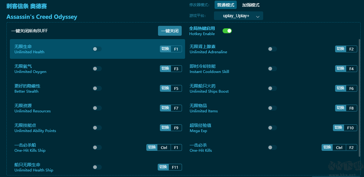 刺客信條奧德賽十五項(xiàng)修改器鍵位功能