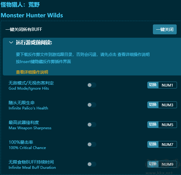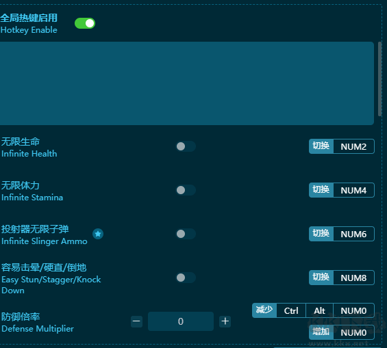 怪物獵人:荒野二十一項(xiàng)修改器鍵位功能