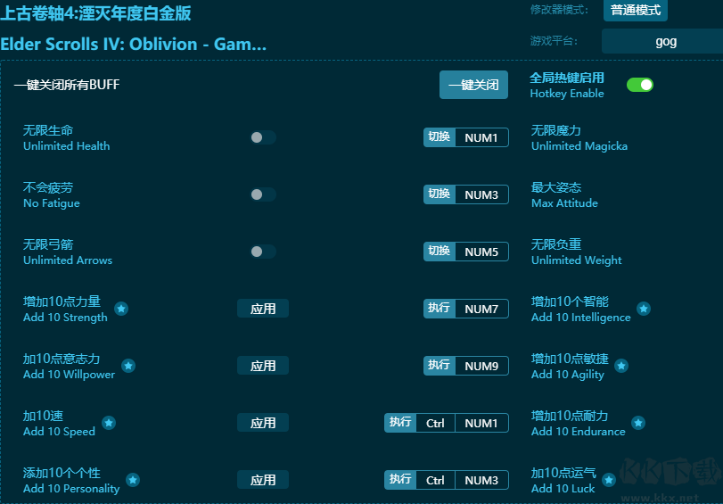上古卷軸4:湮滅重制版十六項修改器鍵位功能