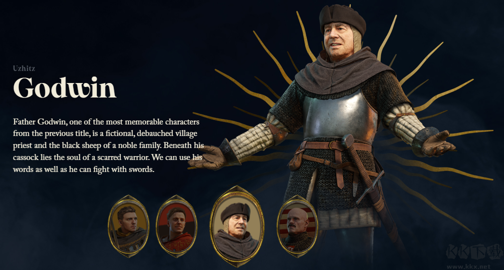 戈德溫神父是前作中最令人難忘的角色之一,他是一位虛構(gòu)、放蕩的鄉(xiāng)村牧師,也是一個(gè)貴族家庭的害群之馬。在他的長(zhǎng)袍下,隱藏著一個(gè)傷痕累累的戰(zhàn)士的靈魂。我們可以使用他的文字,就像他可以用劍戰(zhàn)斗一樣。