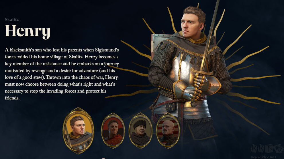 一個(gè)鐵匠的兒子,當(dāng)西吉斯蒙德的軍隊(duì)突襲他的家鄉(xiāng)斯卡利茨村時(shí),他失去了父母。亨利成為抵抗組織的關(guān)鍵成員,他踏上了一段以復(fù)仇和冒險(xiǎn)欲望(以及他對(duì)美味燉菜的熱愛(ài))為動(dòng)力的旅程。被扔進(jìn)戰(zhàn)爭(zhēng)的混亂中,亨利現(xiàn)在必須在做正確的事情和阻止入侵部隊(duì)和保護(hù)他的朋友之間做出選擇。