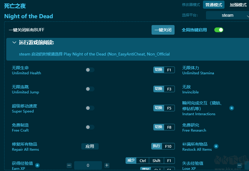 死亡之夜二十項(xiàng)修改器是一款非常棒的游戲輔助工具,專(zhuān)門(mén)為僵尸生存游戲《死亡之夜》制作的二十項(xiàng)內(nèi)置菜單可以幫助玩家提升游戲體驗(yàn),強(qiáng)大的功能可以無(wú)視所有強(qiáng)大的Boss,節(jié)省開(kāi)荒時(shí)間,需要的玩家趕緊下載,體驗(yàn)不一樣的游戲樂(lè)趣吧!