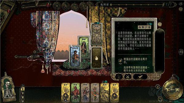 權(quán)力核心:玩家扮演大臣阿爾圖,因勸諫荒淫無度的蘇丹反被強(qiáng)制參與其發(fā)明的殘酷游戲。蘇丹受神秘女術(shù)士蠱惑,通過抽取"縱欲、殺戮、奢靡、征服"四類卡牌下達(dá)任務(wù),失敗者將遭處決。