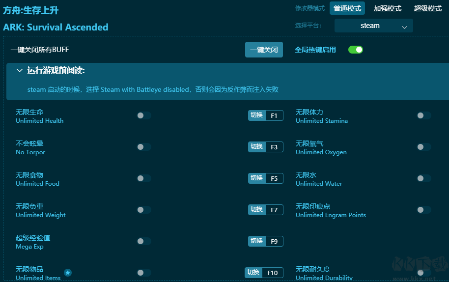 方舟生存飛升十七項(xiàng)修改器使用說明