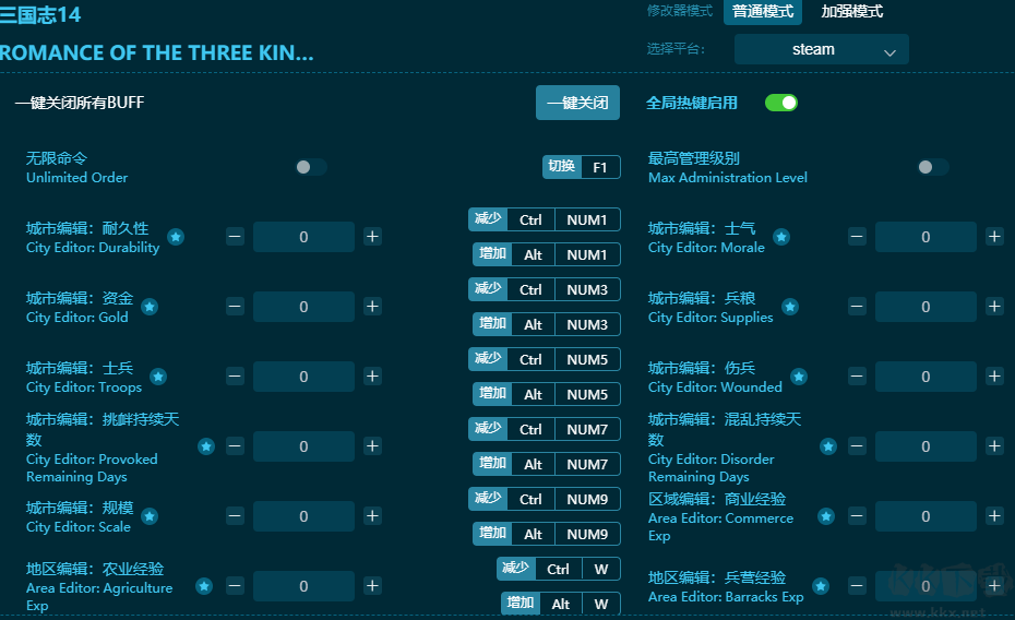 ???????三國志14威力加強版四十一項修改器鍵位介紹
