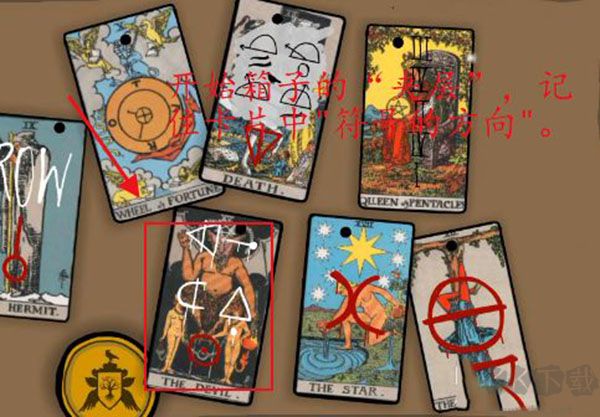 2、第二步,打開箱子 “夾層”,記住卡片中 “符號(hào)的方向”。