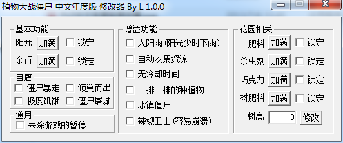 植物大戰(zhàn)僵尸2010年度版修改器是針對植物大戰(zhàn)僵尸年度版開發(fā)的一款游戲輔助工具讓玩家在游戲中可以獲得任何資源,任何效果。為玩家提供多項修改功能,比如陽光不減,10倍陽光等等功能,非常好用哦,這里小編還特別整理了兩款修改器,都非常不錯!有細(xì)化的玩家不要錯過。