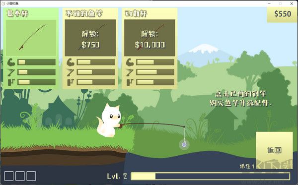 小貓釣魚中文版是款治愈風(fēng)的休閑益智小游戲,畫風(fēng)簡(jiǎn)單可愛(ài)。你扮成軟萌小貓咪坐在河邊釣魚,享受悠閑時(shí)光。操作特簡(jiǎn)單,長(zhǎng)按鼠標(biāo)就行,不同的魚掙扎力度不一樣,得考驗(yàn)控制技巧。釣上來(lái)的魚賣掉能賺金幣,用來(lái)買更好的魚竿裝備,配上高級(jí)裝備才能釣到深水大魚,來(lái)和小貓一起享受陽(yáng)光、微風(fēng)和釣魚的樂(lè)趣,在寧?kù)o河邊體驗(yàn)平和愜意的益智之旅吧。