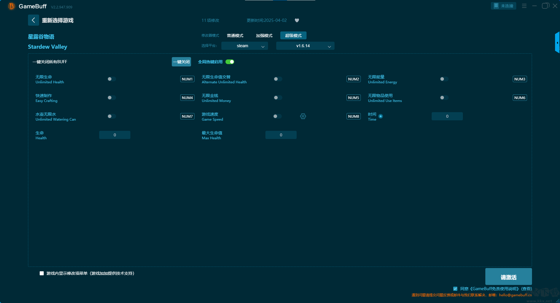 星露谷物語(yǔ)十七項(xiàng)修改器pc新版超級(jí)模式修改 buff 功能說(shuō)明