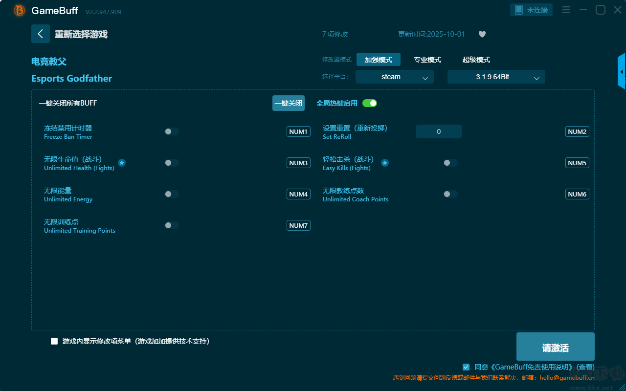 電競教父七項修改器pc終極版是一款供能強大且非常實用的游戲輔助工具修改器,這里有超多的游戲都可以進行修改玩耍,支持玩家在游玩過程中一鍵開啟,凍結禁用計時器、設置重置(重新投擲)、無限生命值(戰(zhàn)斗)、無限能量、無限訓練點、輕松擊殺(戰(zhàn)斗)、無限教練點數(shù)七項強大的輔助功能。需要的小伙伴快來KK下載站下載使用體驗吧。