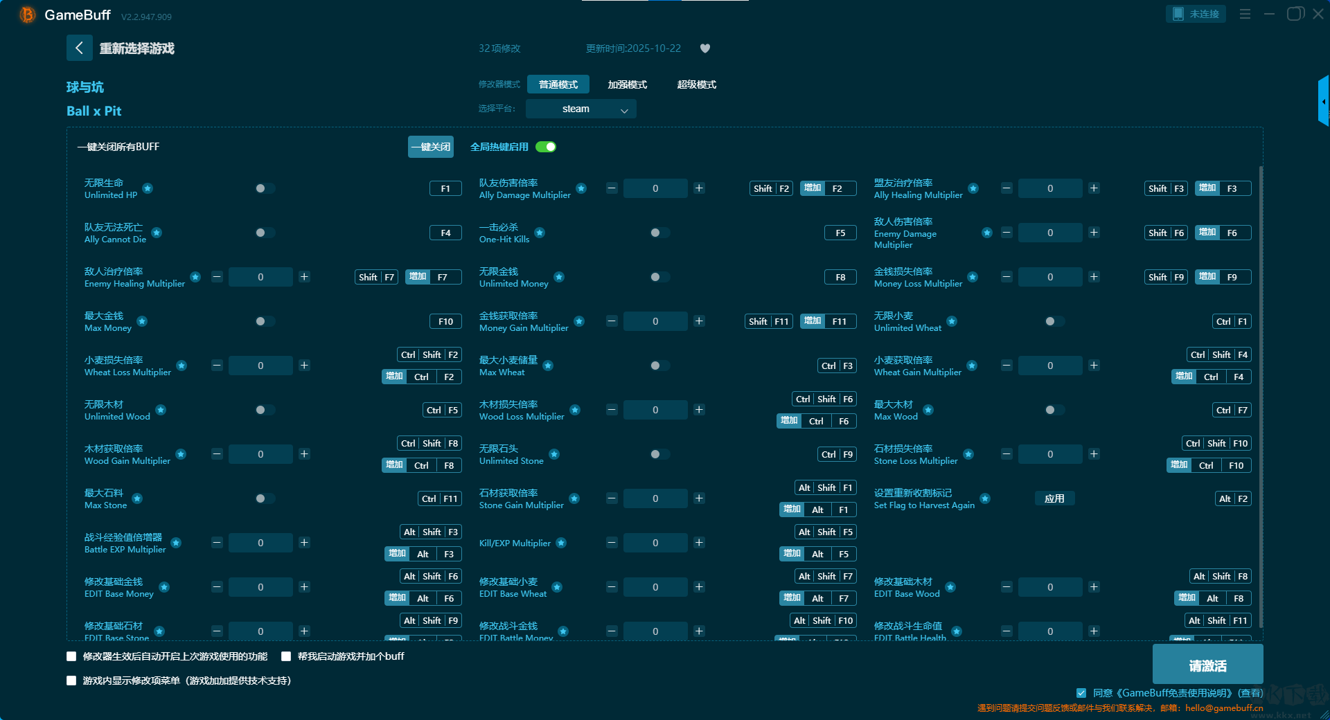 球比倫戰(zhàn)記三十二項修改器pc重置版是一款功能搶的游戲修改器。玩家可在游戲球比倫戰(zhàn)記游玩過程中一鍵開啟,無限生命、隊友無法死亡、敵人治療倍率、最大金錢、小麥損失倍率、無限木材、木材獲取倍率、最大石料等32項修改內(nèi)容。需要這款修改器的小伙伴快來KK下載站下載工具體驗一下吧。