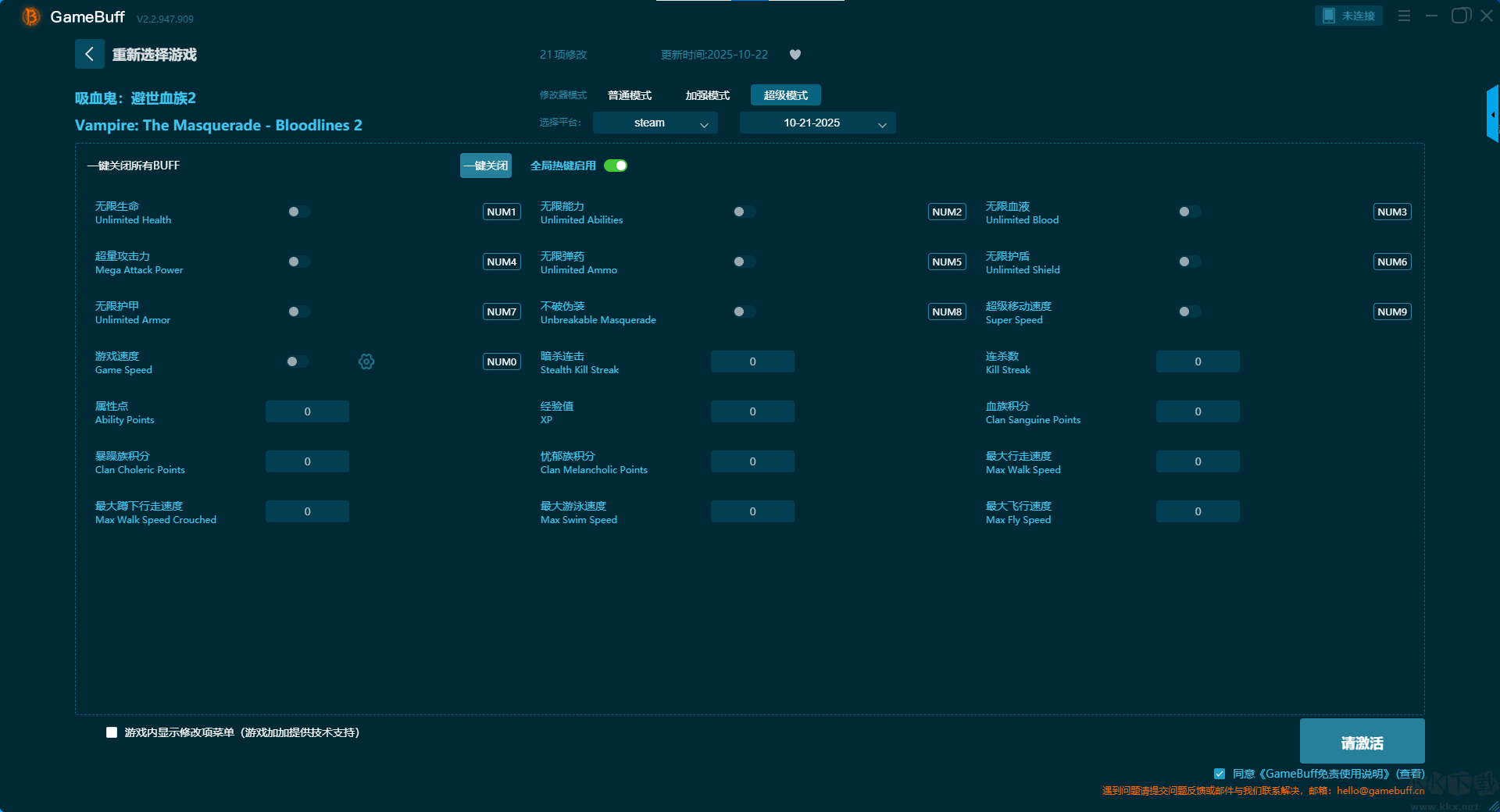 吸血鬼避世血族2二十四項(xiàng)修改器pc國(guó)際版超級(jí)模式(支持 21 項(xiàng)修改,不支持聯(lián)網(wǎng)模式)
