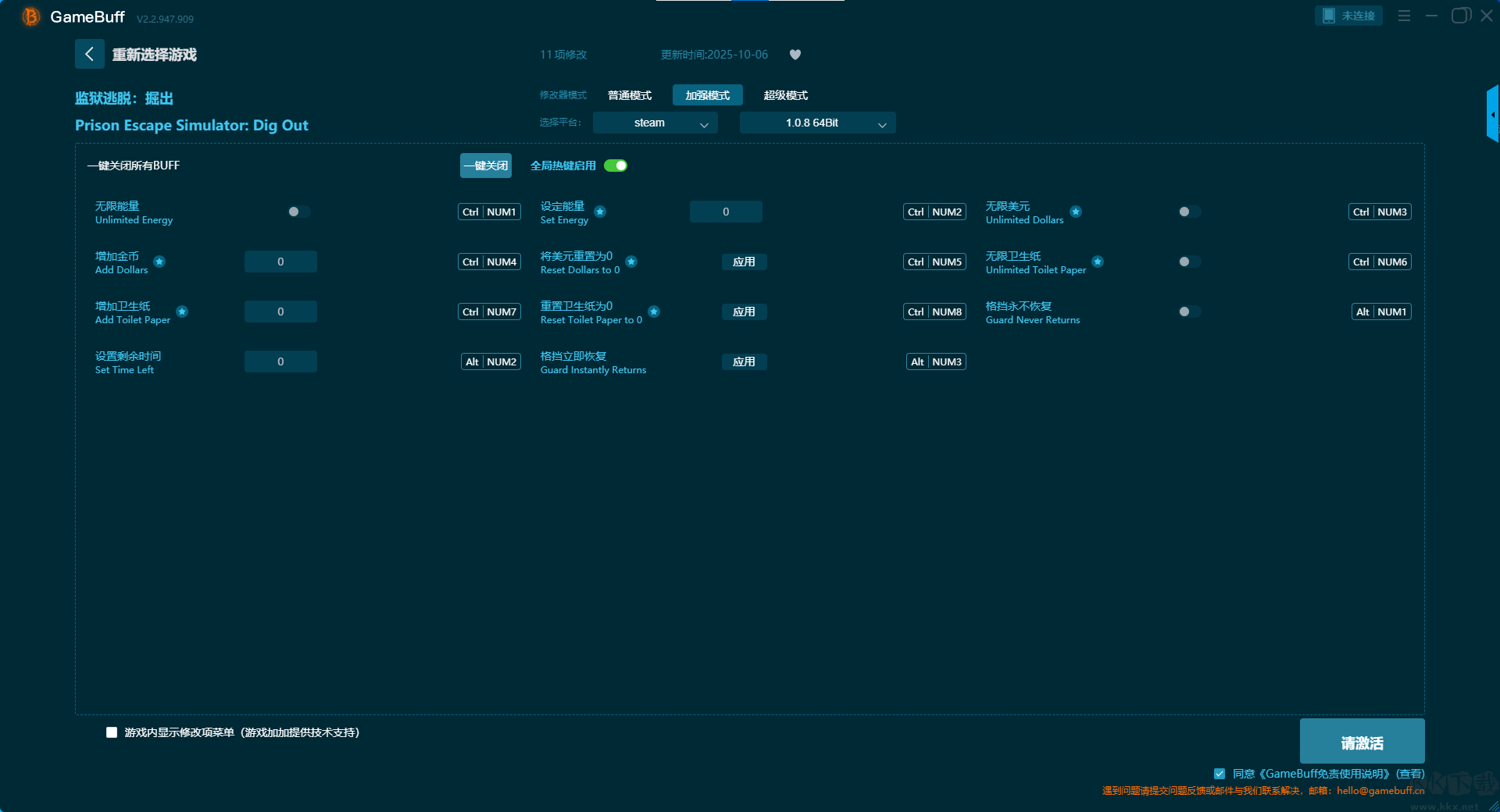 監(jiān)獄逃脫掘出八項修改器pc最終版是一款功能強大的游戲輔助工具。玩家可在游戲中一鍵開啟,無限能量、暫停時間、無限物品、解鎖指南針、凍結(jié)保護返回計時器、輕松清除污漬、衛(wèi)生紙貨幣、高級貨幣等8項普通模式的強大修改功能。喜歡的小伙伴快來KK下載站下載這款修改器體驗一下吧。