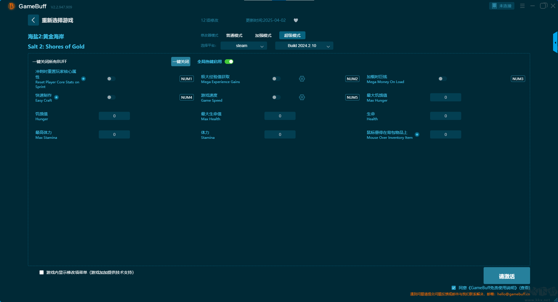 鹽2黃金海岸十項修改器pc綠色版超級模式修改功能介紹