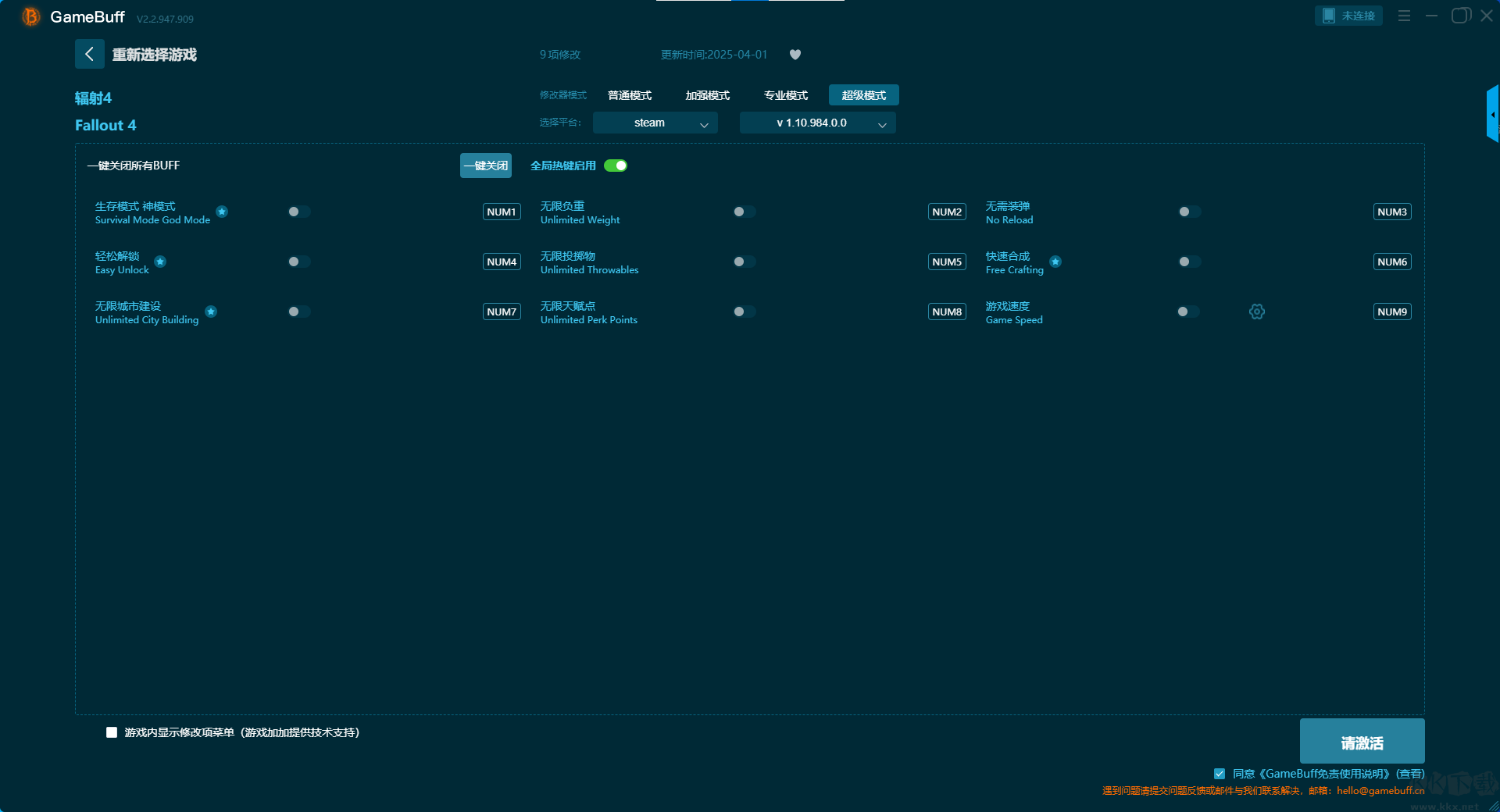 輻射4十六項修改器pc重置版是一款專業(yè)的游戲輔助工具。玩家可在游戲輻射4游玩過程中開啟輔助,支持在steam,uwp等平臺上使用。玩家可一鍵開啟,無限生命、無限 AP、無核輻射、凍結(jié)怪物等級機(jī)制、超級移動速度、無限負(fù)重、無限瓶蓋等16項普通模式修改功能。需要的小伙伴快來KK下載站下載這款修改器體驗(yàn)一下吧。
