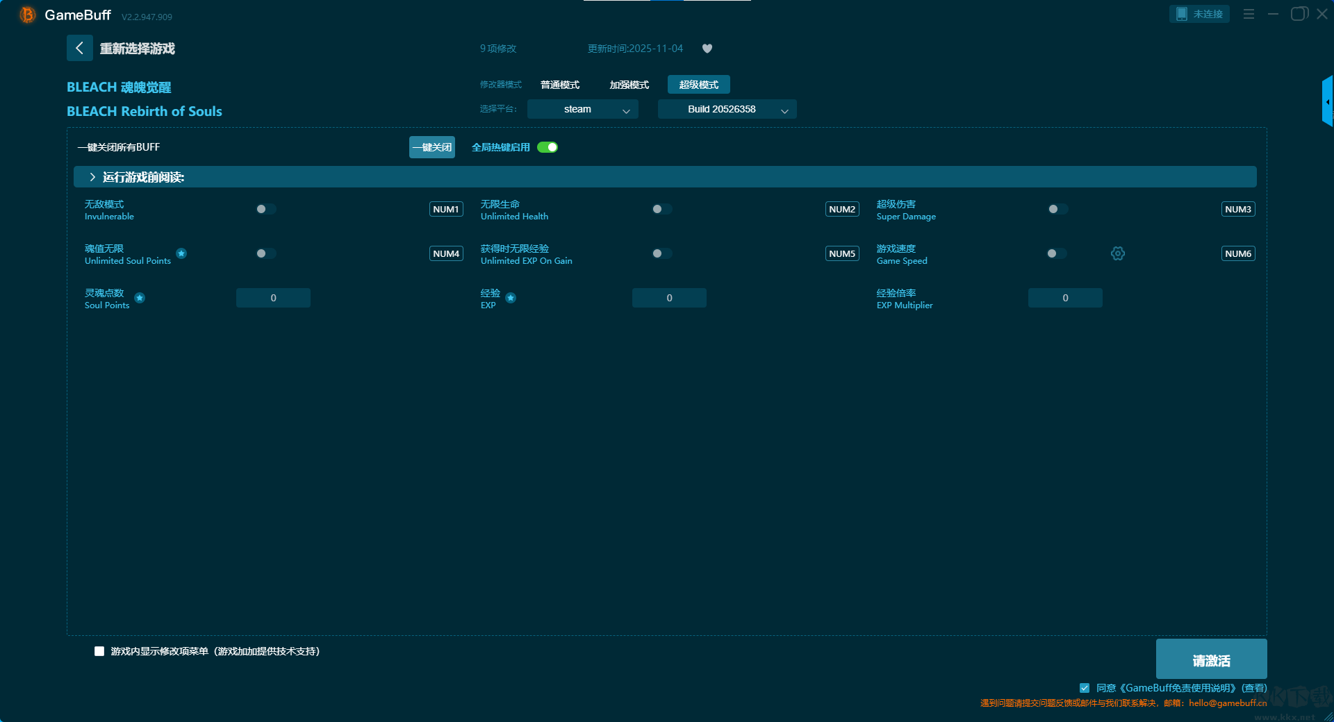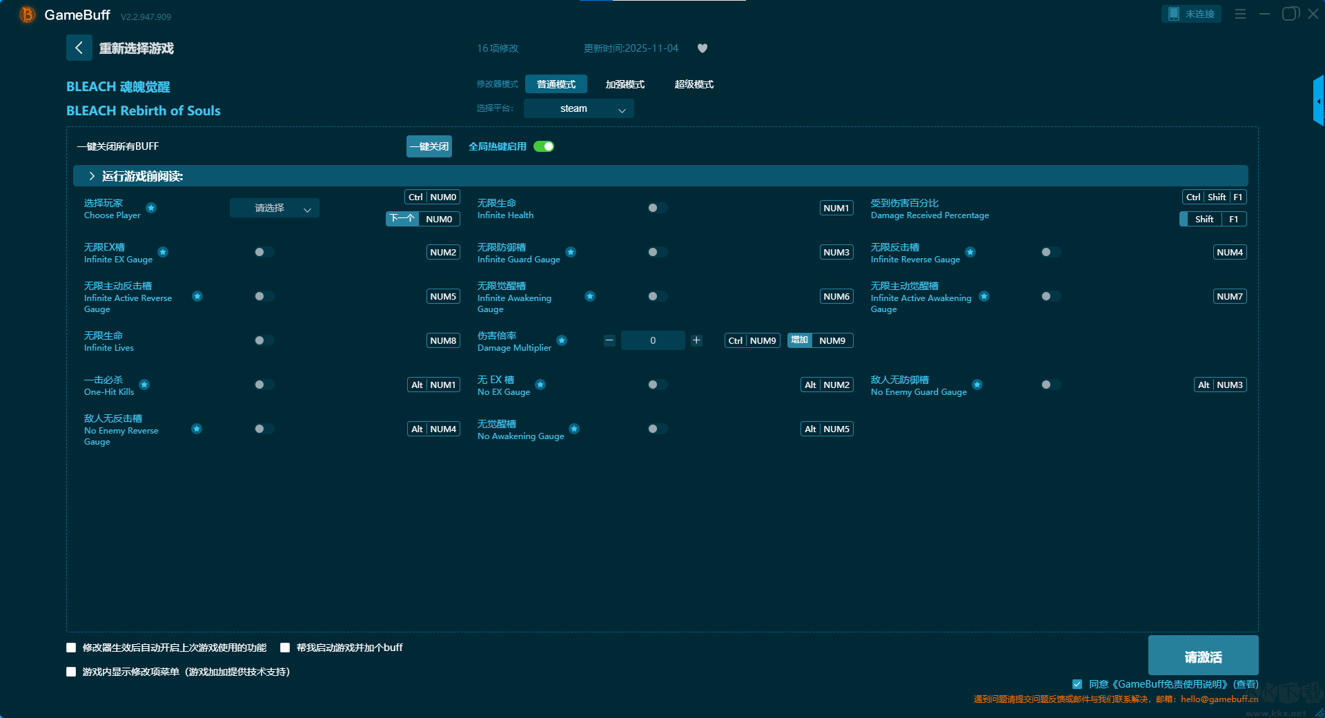BLEACH魁拔覺(jué)醒十六項(xiàng)修改器pc綠色版普通模式修改功能介紹