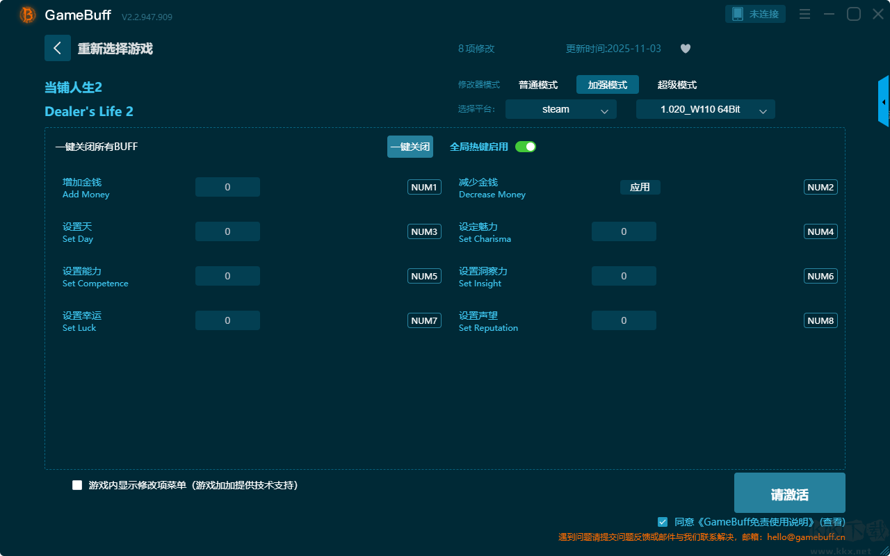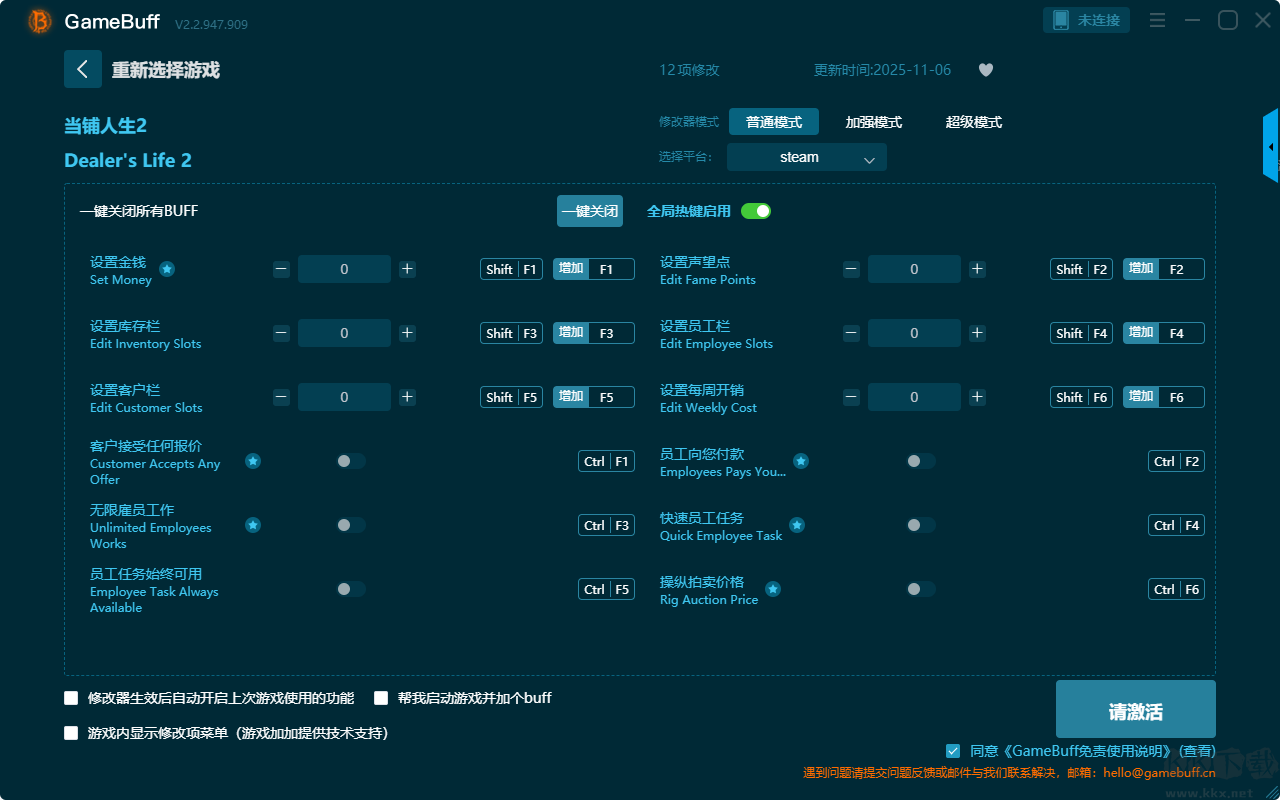 當鋪人生2十二項修改器pc正版是一款功能強大的游戲輔助工具,玩家可在游戲的游玩過程中一鍵開啟,設置金錢、設置聲望點、設置庫存欄、設置員工欄、設置客戶欄、設置每周開銷、客戶接受任何報價、無限雇員工作等12項普通模式修改功能。需要這款修改器的小伙伴快來KK下載站下載,開啟你的無敵游戲之旅吧。