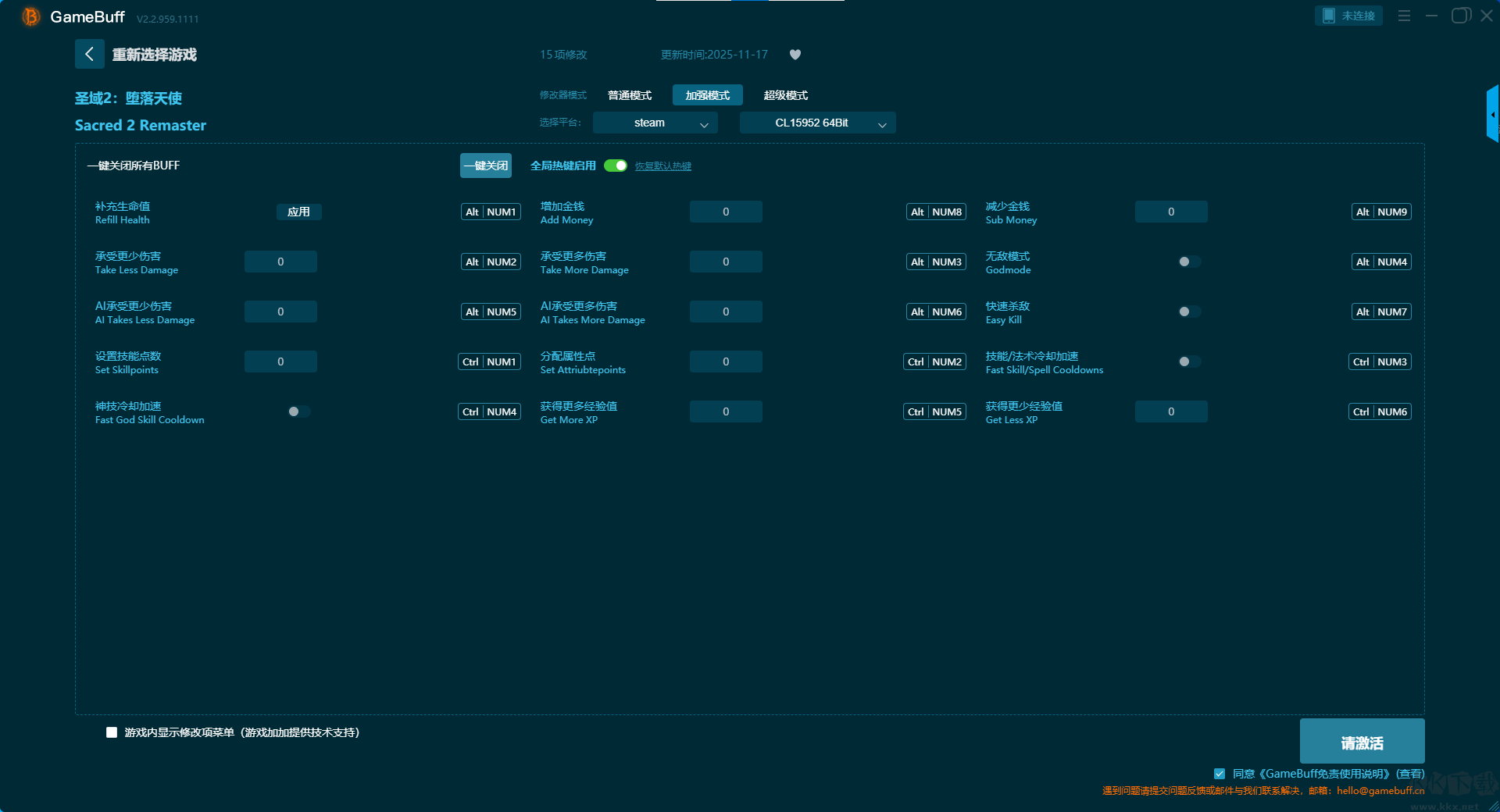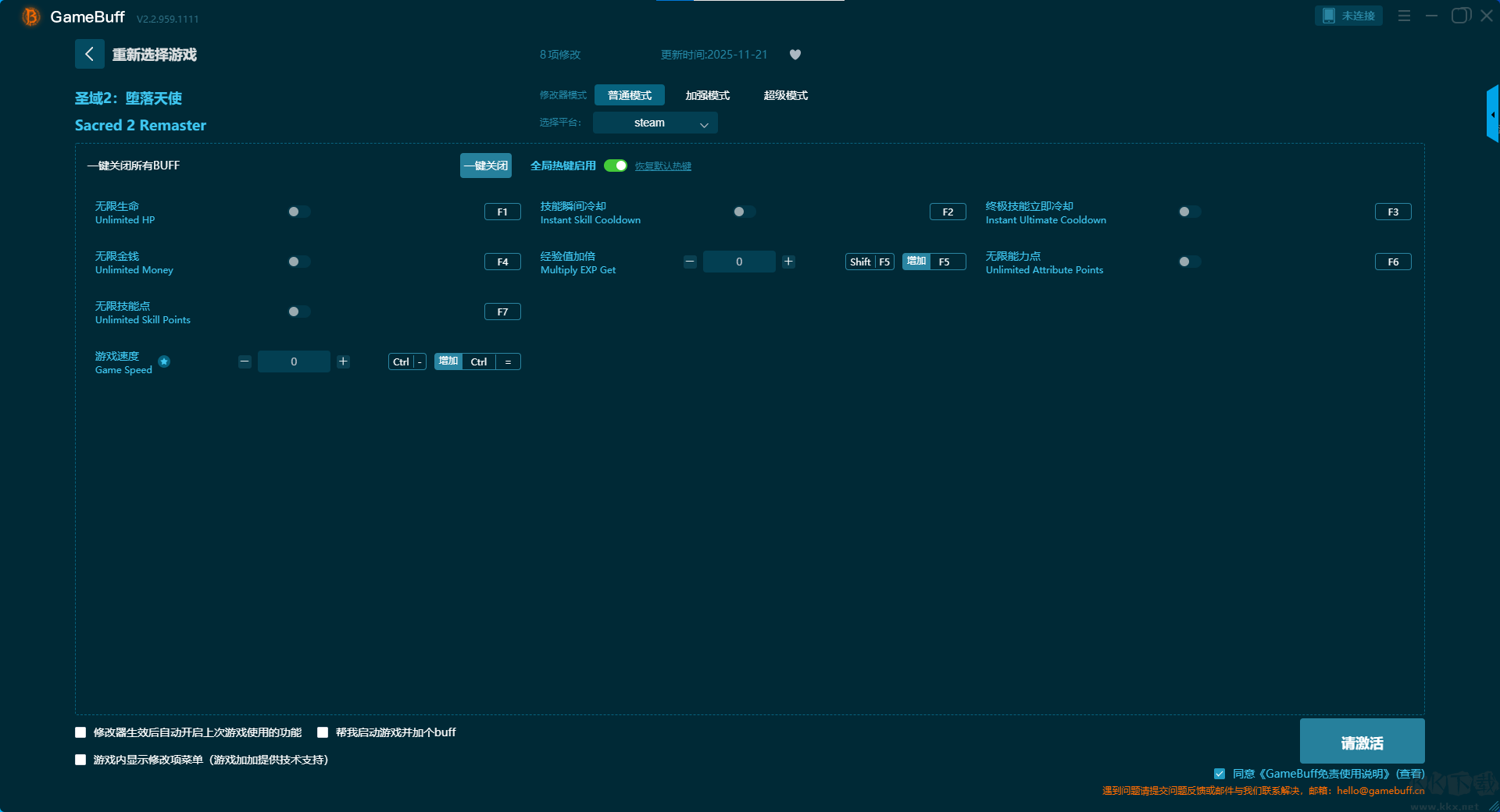 Sacred 2 Remaster八項修改器pc綠色版是一款功能強大的游戲輔助工具。多項的修改模式和超多的修改功能,支持在steam平臺使用。玩家可在游戲中開啟,補充生命值、承受更少傷害、AI 承受更少傷害、設(shè)置技能點數(shù)、神技冷卻加速、增加金錢、減少金錢等多項普通模式修改功能??靵硐螺d體驗一下吧。