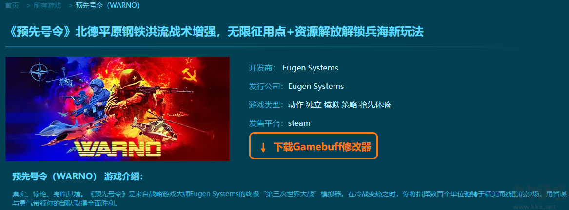 預(yù)先號(hào)令六項(xiàng)修改器pc正式版是一款擁有超多修改功能的游戲輔助修改器。多樣的修改模式和修改功能,完美的助力你在游戲中大殺四方。擁有,無(wú)限命令、敵方無(wú)法指揮、無(wú)限單位、無(wú)限單位(陸軍元帥與行動(dòng))、極速充能風(fēng)之翼、重置敵方分?jǐn)?shù)、暫停游戲計(jì)時(shí)器等多項(xiàng)修改功能。需要的小伙伴快來(lái)下載體驗(yàn)。