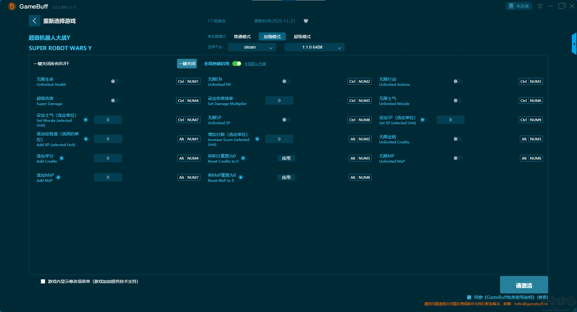 超級機器人大戰(zhàn)Y十四項修改器pc正版超級模式(支持 11 項修改,不支持聯(lián)網(wǎng)模式)