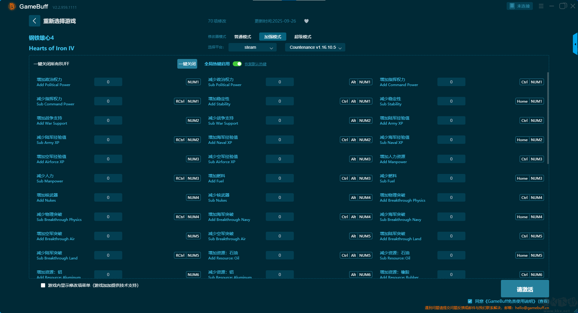 鋼鐵雄心4三十五項(xiàng)修改器pc中文版加強(qiáng)模式部分修改功能介紹
