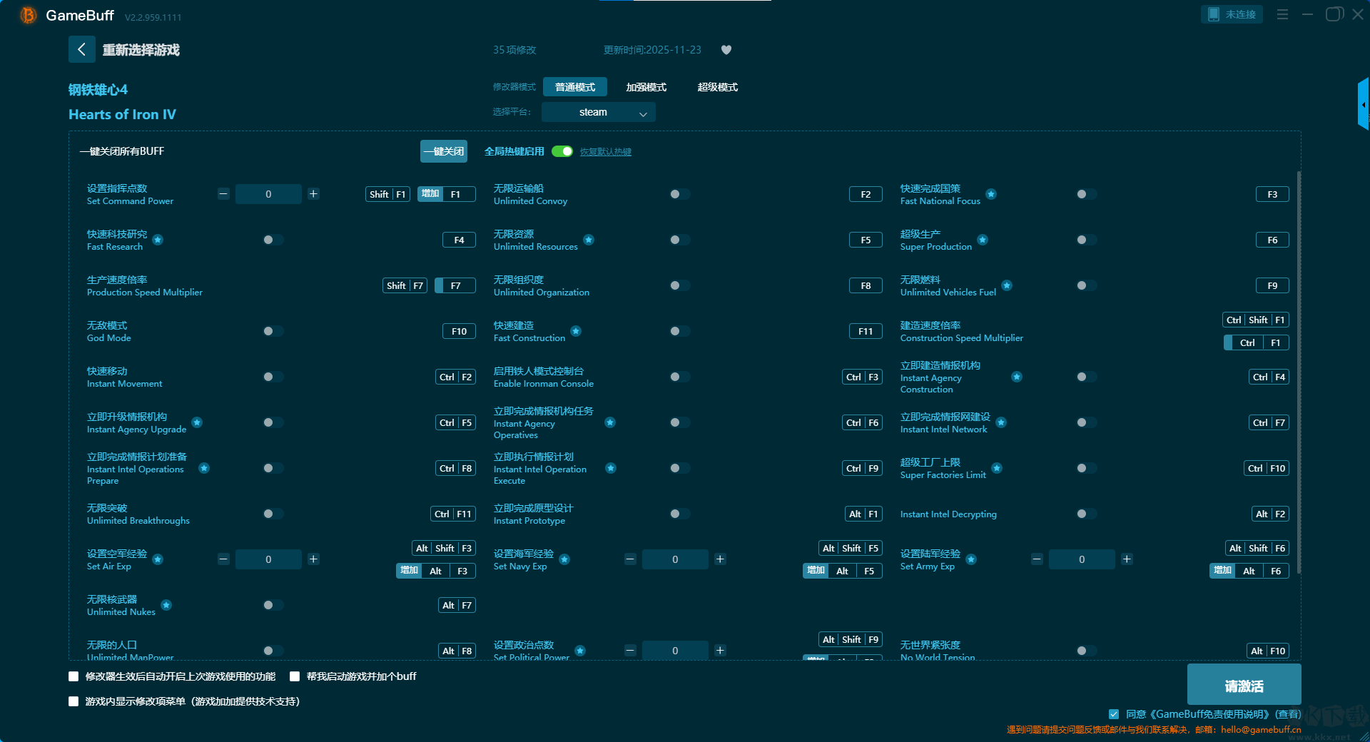鋼鐵雄心4三十五項(xiàng)修改器pc中文版超級(jí)模式修改功能介紹