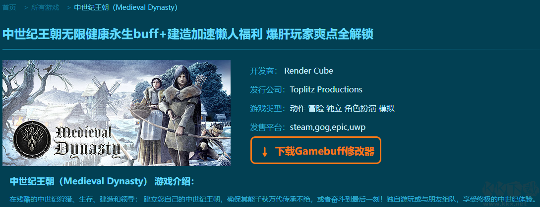 中世紀王朝六十一項修改器pc最終版是一款多功能的游戲輔助工具,支持在steam、gog、epic、uwp各大平臺使用。玩家可在游戲中世紀王朝的游玩過程中一鍵開啟,無限生命、無限體力、從不餓、永不口渴、沒有毒藥、永不骯臟、沒有醉酒、無限負重等多達61項修改功能??靵硐螺d這款修改器體驗一下吧。