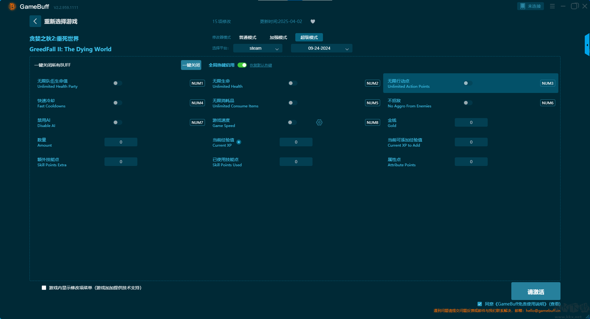 貪婪之秋2垂死世界十八項(xiàng)修改器pc中文版是一款專為游戲貪婪之秋2垂死世界所打造的游戲輔助修改器。玩家可在這款游戲的游玩過程中一鍵開啟,無限生命、無限護(hù)盾、無限魔法、無限 AP、無限技能點(diǎn)、無限能力點(diǎn)、免費(fèi)工作臺(tái)制作、技能瞬間冷卻等超多項(xiàng)修改功能。需要這款修改器的小伙伴快來下載體驗(yàn)吧。