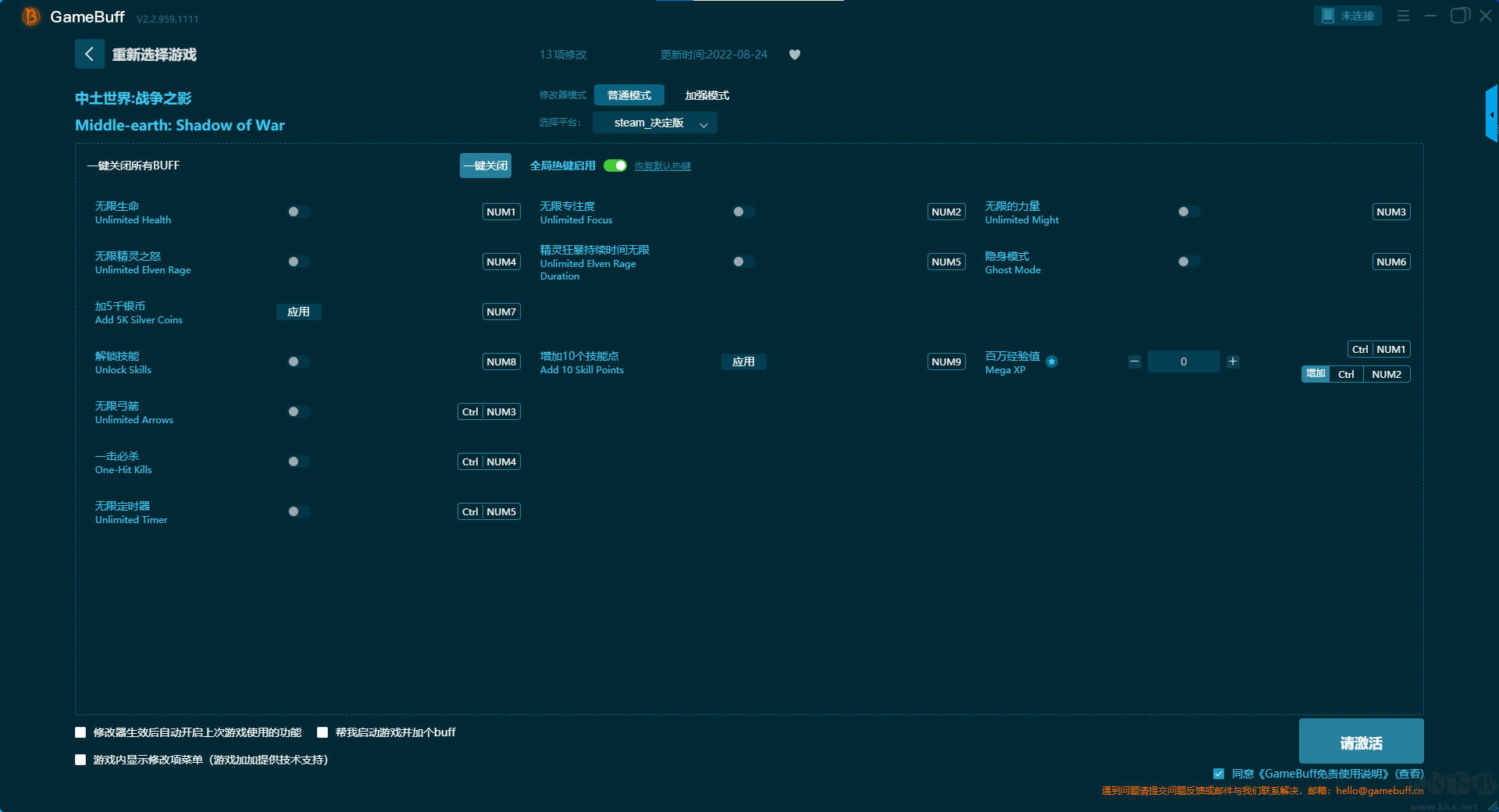 中土世界戰(zhàn)爭(zhēng)之影十三項(xiàng)修改器pc正式版加強(qiáng)模式部分修改功能介紹