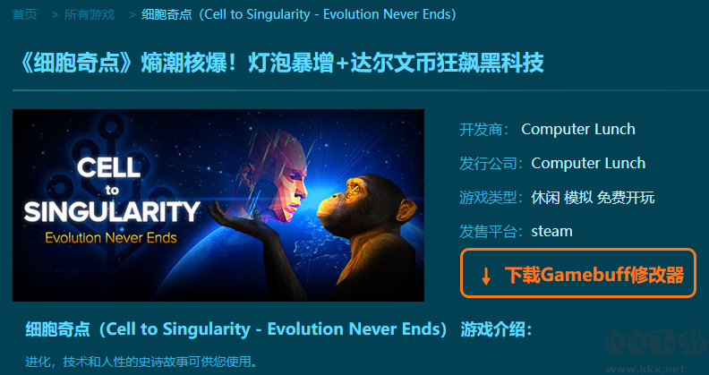 細(xì)胞奇點(diǎn)三項(xiàng)修改器pc豪華版是一款功能強(qiáng)大的游戲輔助工具。這款修改器支持7000+游戲修改,可自由選擇使用。玩家可在細(xì)胞奇點(diǎn)的游玩過(guò)程中一鍵開(kāi)啟,增加燈泡、增加化石、增加開(kāi)關(guān) / 暗物質(zhì)、增加元胚、添加熵 / 星塵等多項(xiàng)修改功能。快來(lái)KK下載站下載體驗(yàn),開(kāi)啟你的暢爽游玩之旅吧。