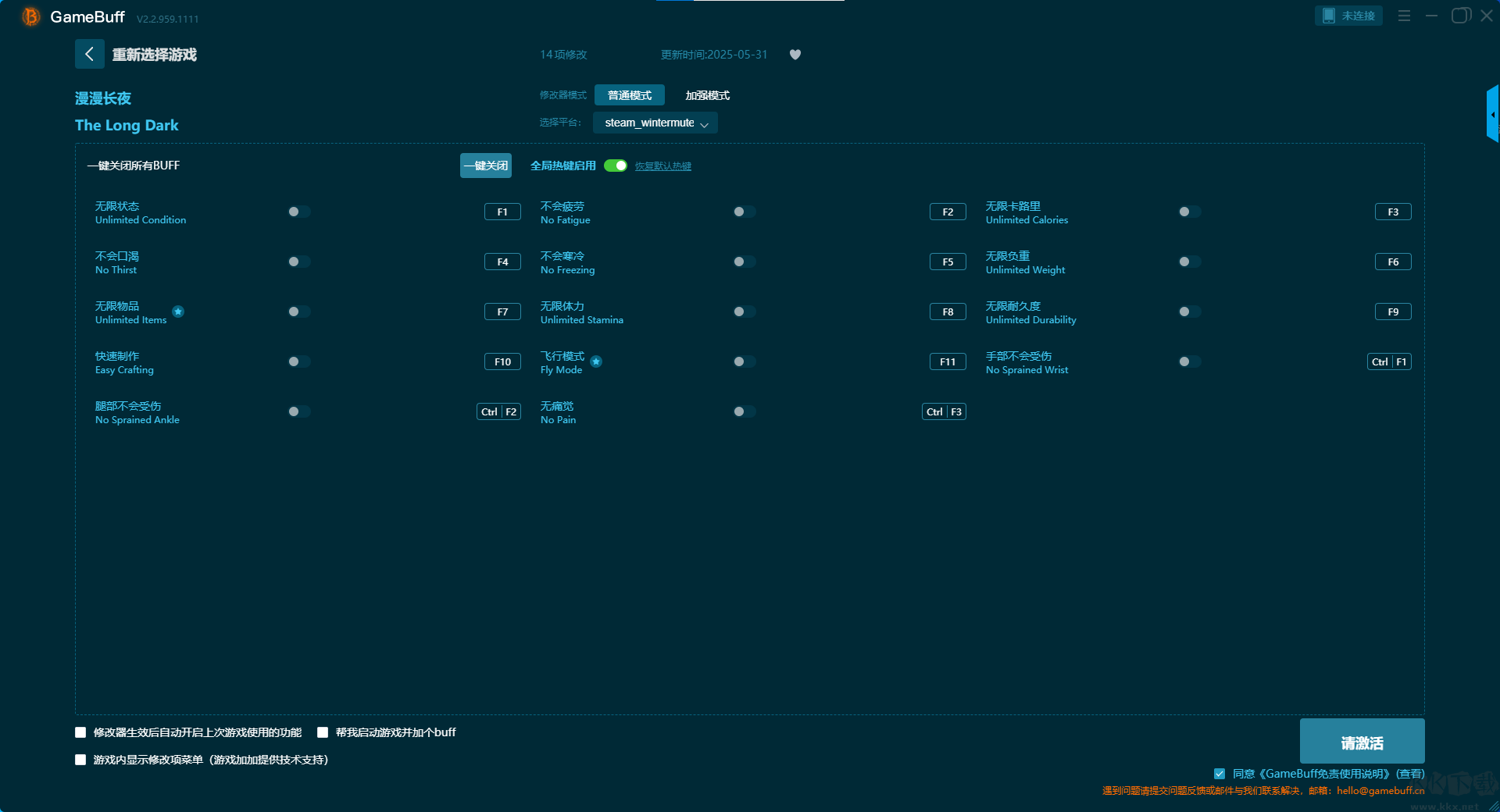 漫漫長夜十四項修改器pc正版是一款專為游戲漫漫長夜所打造的強大游戲輔助修改器,除了這款游戲該修改器還支持為7000+游戲進行游戲修改。玩家可在游戲中一鍵開啟,無限狀態(tài)、不會疲勞、無限卡路里、不會口渴、不會寒冷、無限負重、無限物品、無限體力、無限耐久度、快速制作等多項修改功能??靵鞬K下載站下載體驗一下吧。
