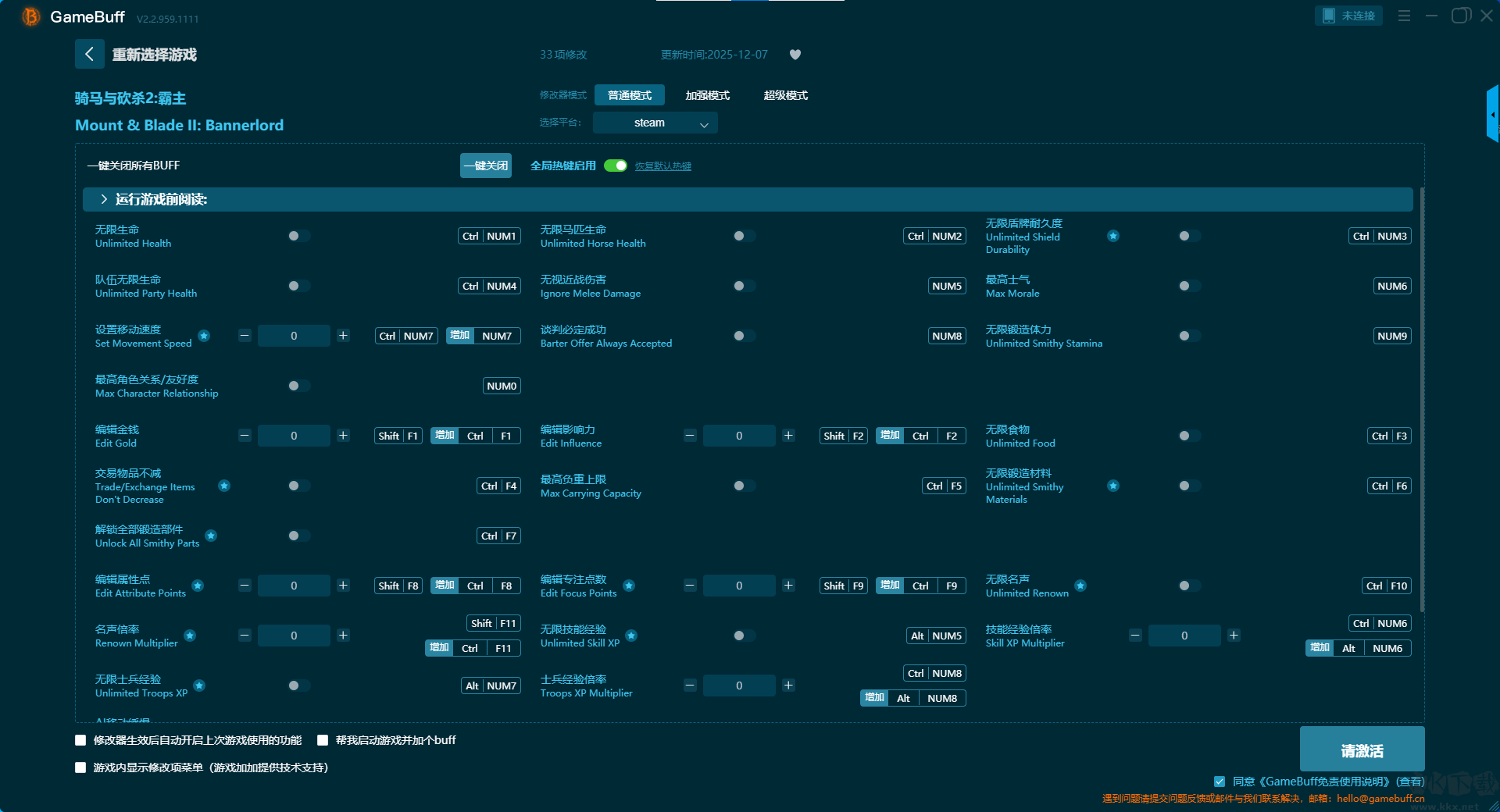騎馬與砍殺2霸主三十三項(xiàng)修改器pc豪華版普通模式修改功能介紹
