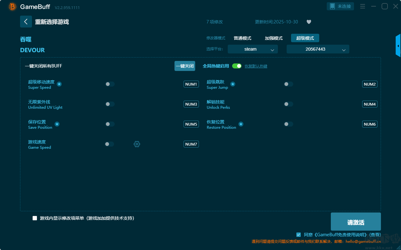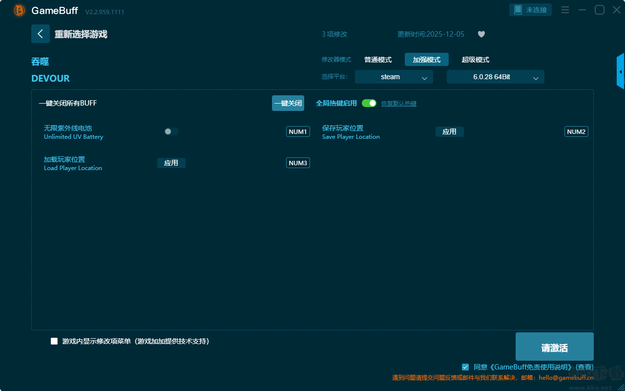 吞噬六項(xiàng)修改器pc完整版是一款專業(yè)且強(qiáng)大的游戲輔助工具,支持玩家在steam平臺(tái)使用。玩家可在游戲的游玩過(guò)程中一鍵開啟,凍結(jié)安娜、超級(jí)手電筒、沒有傷害、無(wú)限紫外線電池、打開所有車門、超級(jí)移動(dòng)速度等多項(xiàng)修改功能。需要這款修改器的小伙伴們快來(lái)KK下載站下載體驗(yàn)一下,開啟你的無(wú)敵游戲之旅吧。