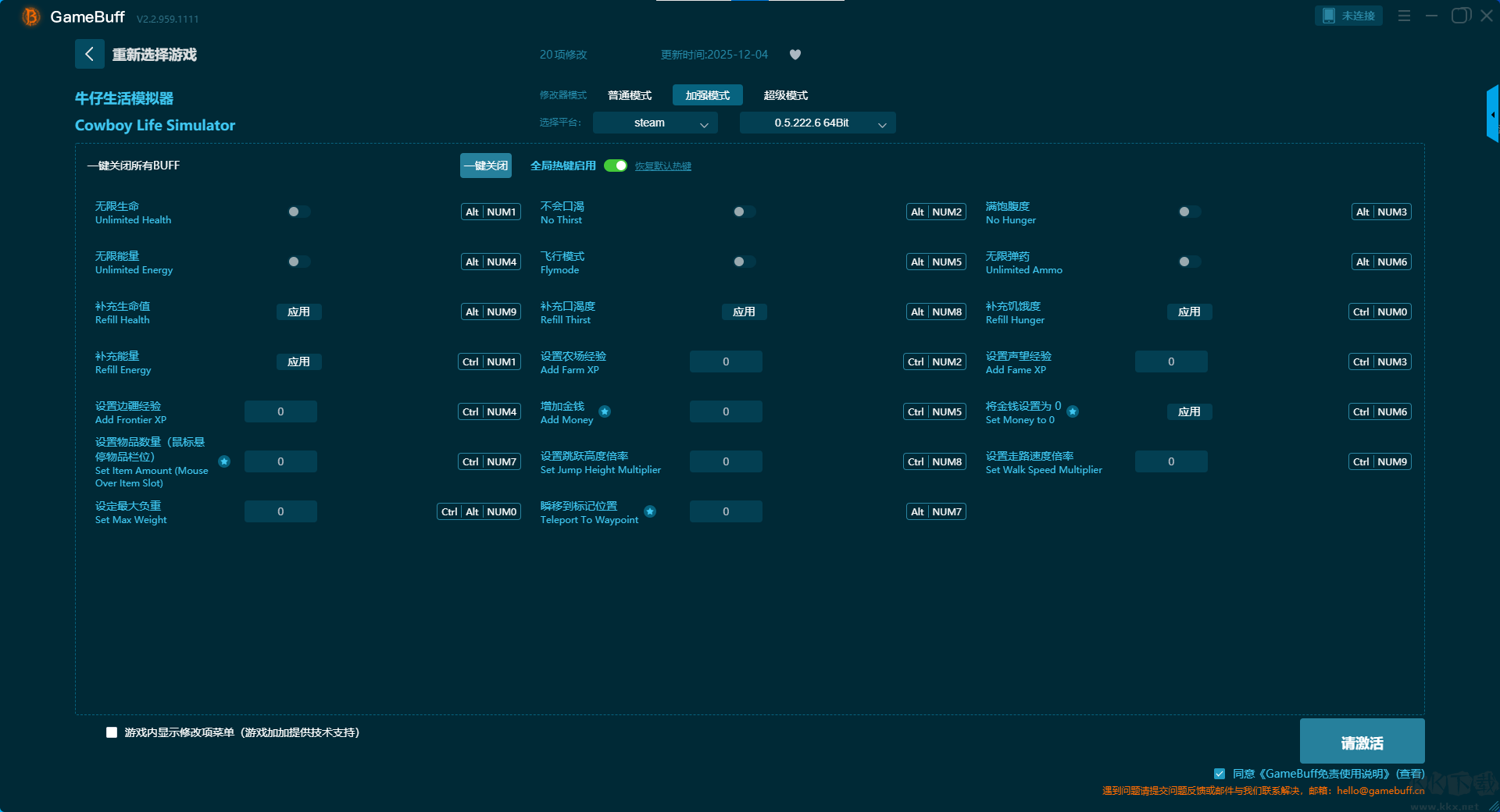牛仔生活模擬器二十項(xiàng)修改器pc專業(yè)版加強(qiáng)模式 (支持 20 項(xiàng)修改,不支持聯(lián)網(wǎng)模式)