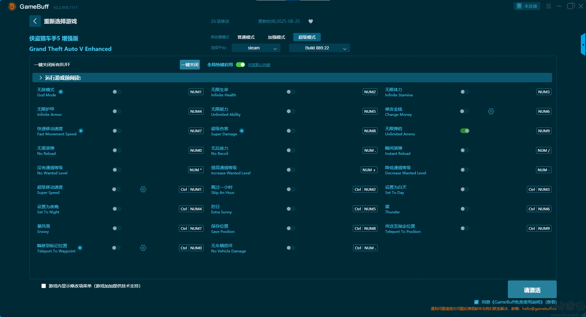 俠盜獵車(chē)手5增強(qiáng)版二十五項(xiàng)修改器