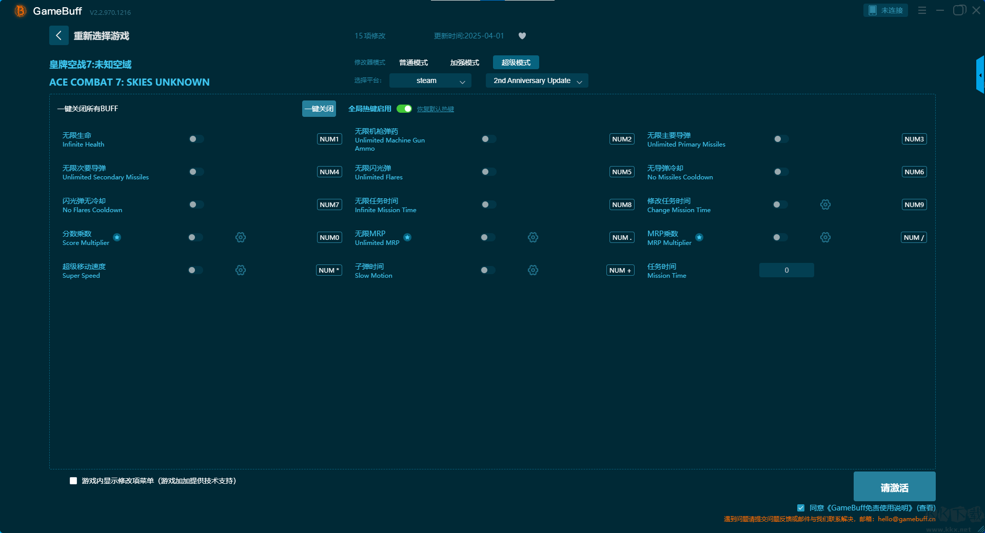 皇牌空戰(zhàn)7未知空域七項(xiàng)修改器