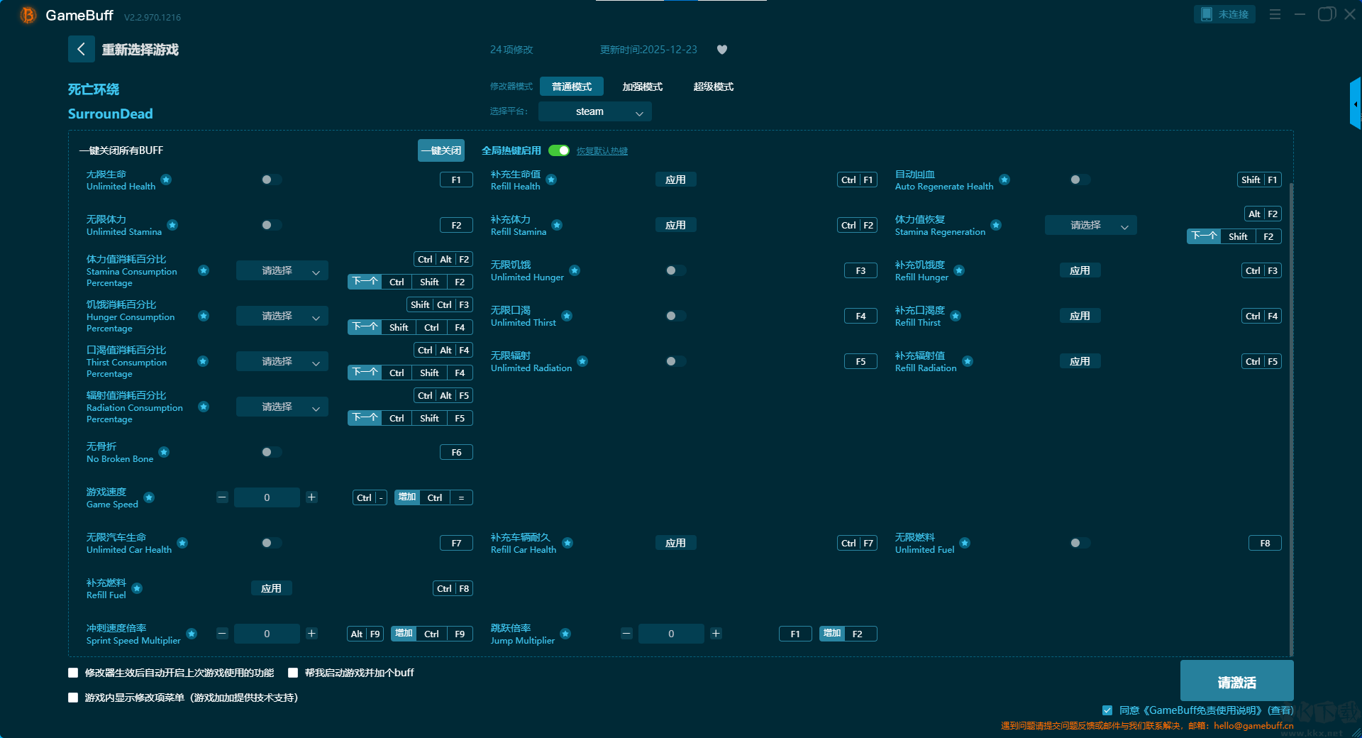 死亡環(huán)繞二十四項修改器pc免費版普通模式修改功能介紹