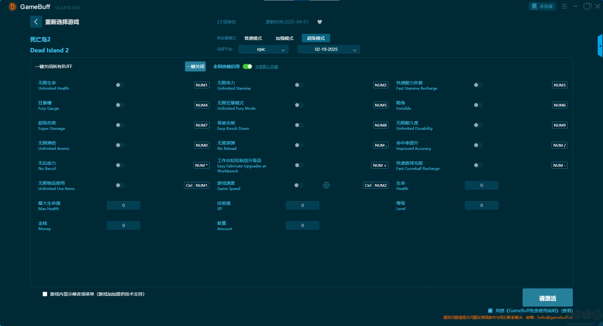 死亡島2二十六項(xiàng)修改器pc免費(fèi)版加強(qiáng)模式修改功能介紹